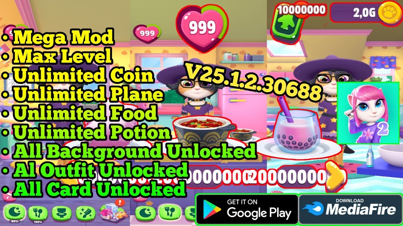 Berikut adalah beberapa fitur utama yang membuat My Talking Angela 2 menarik: