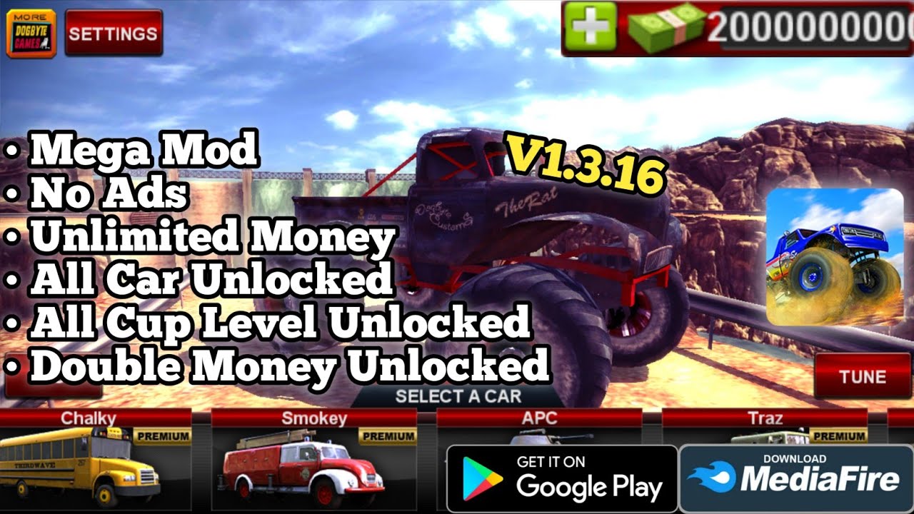 Beragam Kendaraan: Pilih dari berbagai kendaraan, termasuk truk monster, SUV, dan kendaraan spesial lainnya.