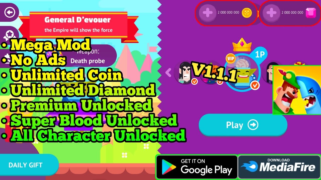 Kumpulkan Koin: Gunakan koin untuk membuka karakter dan senjata baru.